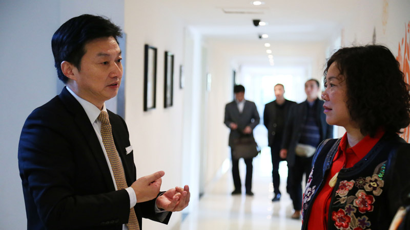 2014年11月13日下午2时许,一辆中巴车满载着远道而来的湖北客人停在了金莎苏州学校的大院内,来自武汉市武昌区人社局刘副局长、安副局长、武汉天资美容美发培训学校雷三林校长等一行18人在孙骏飞校长引领下,参观了校区的美容、美发、化妆、美甲、摄影的每一间教室,分别询问了老师和同学们在金莎学校的工作、学习、生活情况。在会议室,孙校长向各位来宾详细介绍了金莎连锁学校的发展历程、课程设置、师资培养、校务管理、招生模式、学生就业等方面的情况,进行了长达了两个多小时的交流。武昌人社局的领导对金莎学校的发展规模、校园文化、办学方略等给予了充分的肯定和褒奖,各位兄弟学校的校长们也表示了由衷的赞赏。湖北同行们来到金莎同样给了我们激励,共同为美容美发化妆职业培训事业贡献自己的力量!