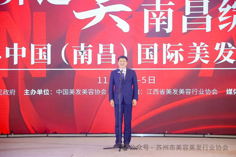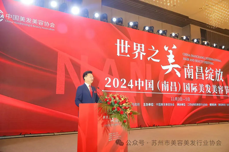 11月4日, 2024中国(南昌)国际美发美容节在江西南昌盛大开幕。中国美发美容协会副会长、苏州市美容美发行业协会会长孙骏飞,江苏省美发美容协会秘书长、江苏金莎学校校长孙胄胤与江苏美协代表团60余人一起出席了开幕式。