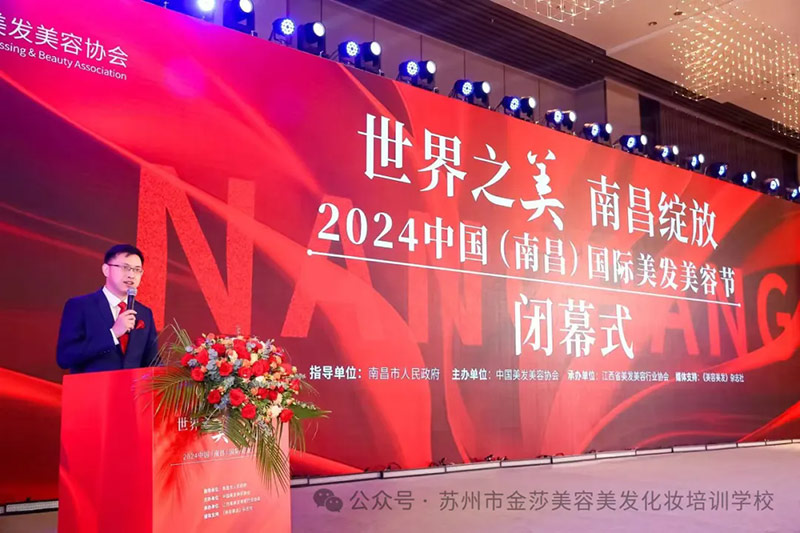 第五届全国美发美容行业职业技能竞赛(美容赛项)与2024第二届中国美业新职业技能大赛及闭幕式由江苏省美发美容协会秘书长、江苏金莎学校校长孙胄胤主持。