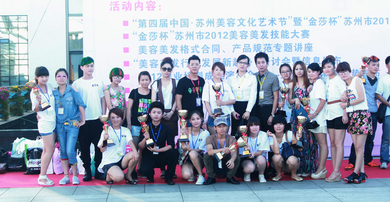 继6月徐州技能大赛后,昆山金莎学校的学员们于7月26日参加了“2012年江苏省美容美发技能大赛-苏州站”的比赛。