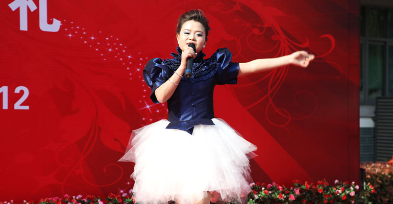 影楼整体造型B班、彩妆事业班的同学们发布了自己的彩妆结业作品,八个班级的同学分别表演了独唱、舞蹈、小品、丝巾秀、脑筋急转弯等精彩的节目。