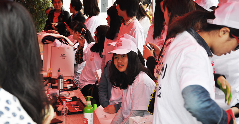 此外,舞台下服务区的热闹与舞台上的绚烂同样精彩。8点30分金莎学校的彩绘化妆,同样吸引了大批参加活动的市民朋友。米老鼠、蝴蝶、哆啦a梦、红色、粉色、黄色、蓝色、绿色……争相出现在化妆师的笔下,而围观的市民用自带的摄影设备拍下这一幕幕精彩的瞬间,顿时周围咔嚓声一片。开幕式一直持续到中午11点30分,让市民与游客在这样的春日里感受雨后运河河畔带给人们的清新的春色,欣赏着一幕又一幕精彩的演出,体验着彩绘化妆、美丽养生带来的自信与健康,相信来到这里,金莎会让你与美丽来个约会。