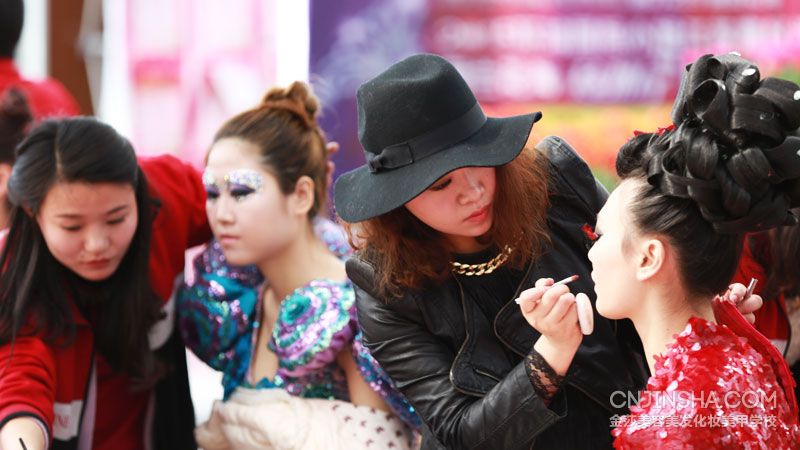 在这些风采靓丽的表演背后,离不开我们金莎美容美发化妆学校的师生们的辛勤努力。认真创作的她们比模特更美。