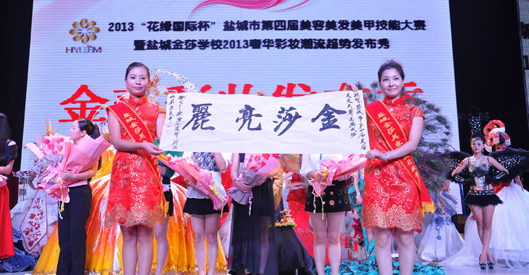 2013年9月21日由盐城市人社局、市总工会主办,金莎美容美发化妆学校承办的盐城市第四届美容美发美甲技能大赛在市鸿运演艺中心隆重举行。300名选手参加了男子修剪与造型、女子修剪与造型、新娘化妆、晚宴化妆、公仔头剪吹、法式水晶、彩绘甲七个项目的金银铜奖角逐。大赛现场,流光溢彩,盛况空前,成果令人欣喜,激清点燃盐城,充分展示了我市美业职业技能人才的靓丽风采。