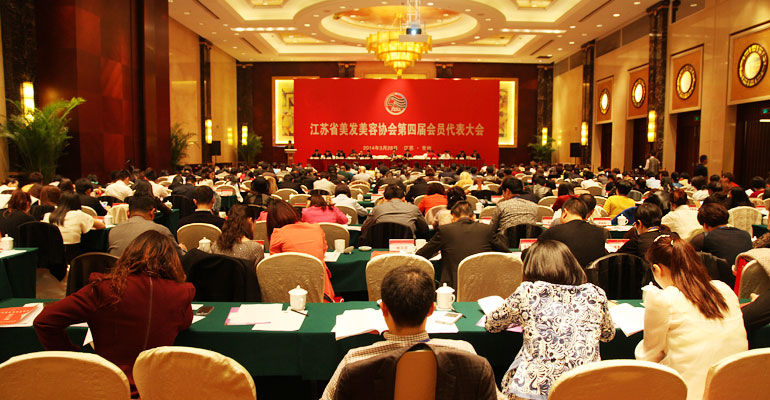江苏省美发美容协会第四届会员代表大会,于2014年3月28日下午2:00在江苏常州香格里拉大酒店隆重举行。随着经济的发展,人民生活水平提高,江苏省美发美容美甲化妆品行业也随其迅速发展并转型升级。江苏省作为沿海发达省份,行业的发展更是走在全国的前列,2013年规模以上经营网点就达81000家,从业人员80万人,美发美容彩妆美甲专业学校60多家,美发美容美甲化妆品公司300多家。来自全省美发美容化妆美甲行业的服务、生产、销售、教育等领域的350多名会员代表出席了会议。