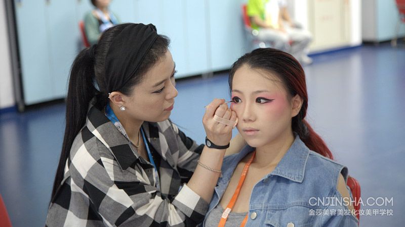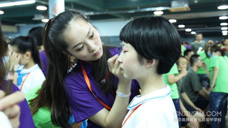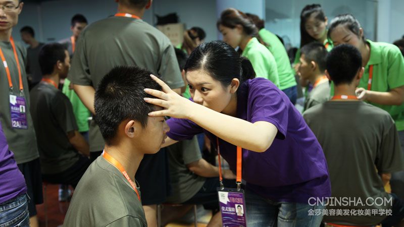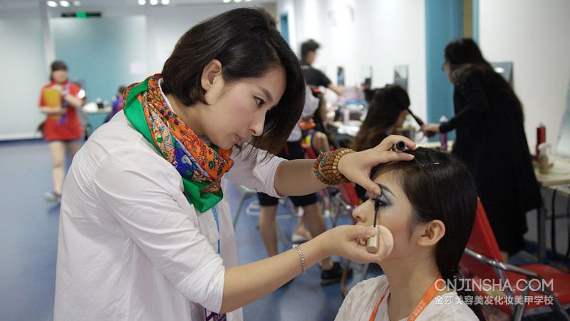 而在这绚丽多彩的背后,有无数的无名英雄为之默默奉献。金莎400多名师生组成的化妆师团队就是这样的一群人,在规定的时间内,她(他)们平均每个人要完成10名演员的化妆造型任务,在保证数量的情况下又要达到组委会、节目组的要求,这对很多化妆师来说是一个新的考验。