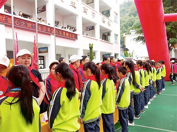 2003年,金莎公司对其进行援建,学校更名为金莎希望小学。2003年至2005年间,金莎公司先后捐赠几十万元,用于新建教学楼、校门、文化墙、围墙等。2006年,新修了学生公寓楼。2007年,金莎公司董事长蒋敏女士等人来到学校,捐赠了校服、文具、教学用品等。2008年,学校拆除破烂厨房、厕所,新建了标准化学生厨房、食品储藏间和水冲式洗手间。2023年六一儿童节期间,由金莎公司牵头与江苏美业一行20余人参加了花里金莎希望小学成立20周年庆祝活动,并进行了助学捐赠。