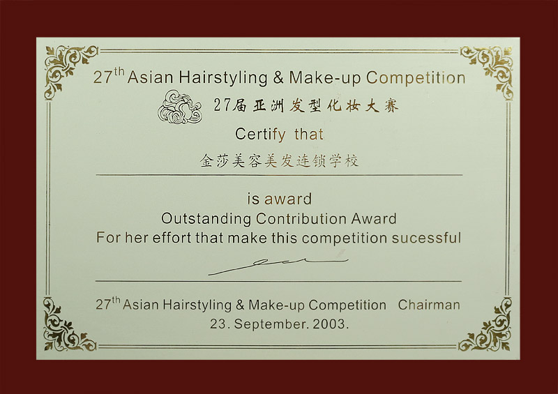 金莎美业集团创始人、苏州市政协委员、中国美发美容协会副会长、江苏省美发美容协会副会长;苏州市美容美发行业协会会长、工商管理硕士、江苏省民办非企业单位先进个人;中国百名杰出女企业家、中国美容教育家金质奖、国家职业技能考评员、裁判员;CIDESCO国际美容师、国家美容高级技师、江苏省杰出青年企业家、江苏省美容业杰出贡献奖